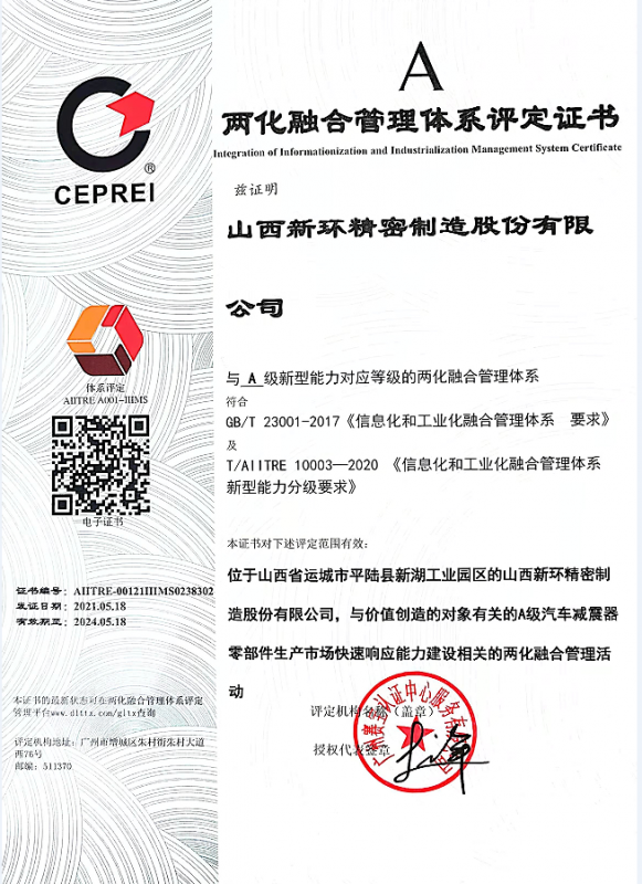 • 兩化融合證書
